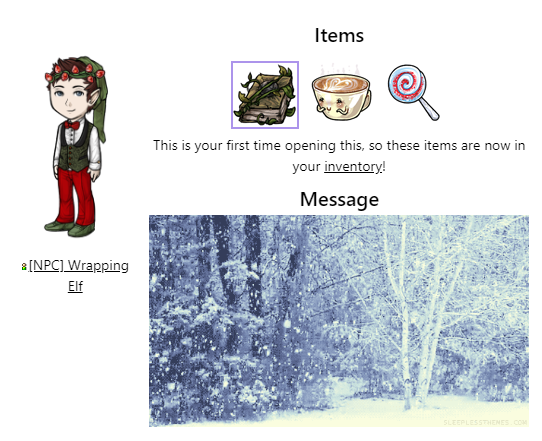 Another very special anon giftbox today, I loved the walking in a winter wonderland theme with the adorable sticker and the beautiful BG! I'm not sure if you're the same anon that's been sending me things this week, but whoever you all are I LOVE YAAAA! Happy Lumi! 🎄