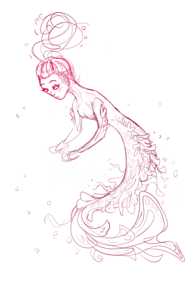 ahhh your mermaids tail looks so gorgeous and flowy, i cant wait to see her finished! hoping you can futz around with the composition, i know the feeling...