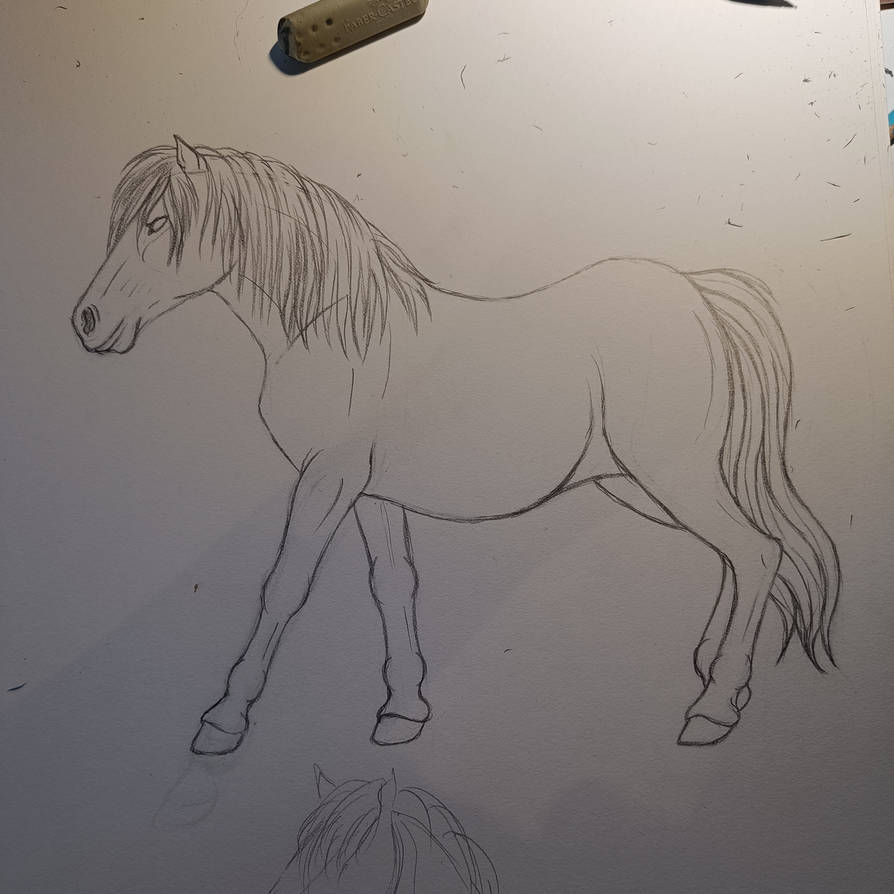 Ok, my sketch came out more Fjord/Haflinger than say... A Shetland pony 😂 So I'm wondering now how large you want your pony?