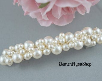 As a human, she's very pale, with papery skin, blue eyes and wavy white hair. She wears a pear barrette like this