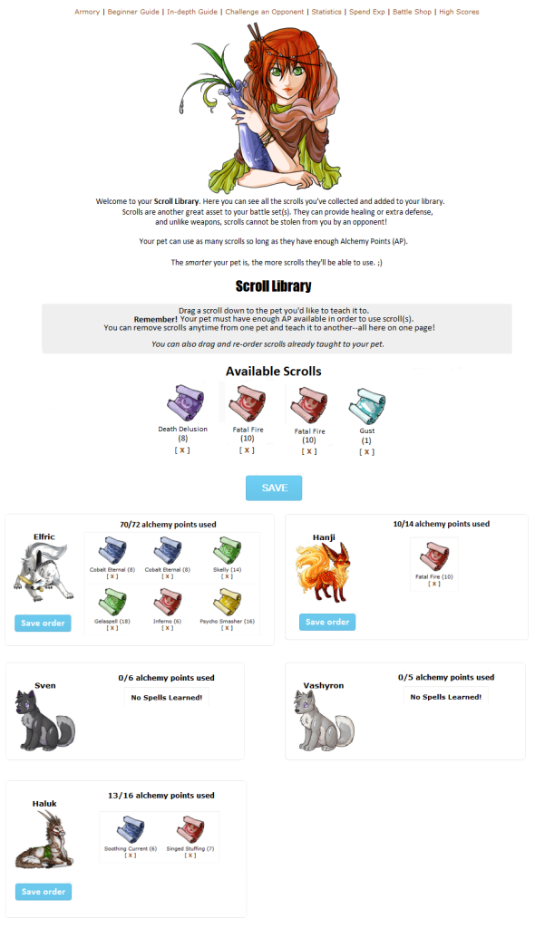 Although I do have to say I feel like a scroll library would actually motivate me a ton to battle with my smaller pets. As it is, they don't even have any intel cause it's just such a bother.