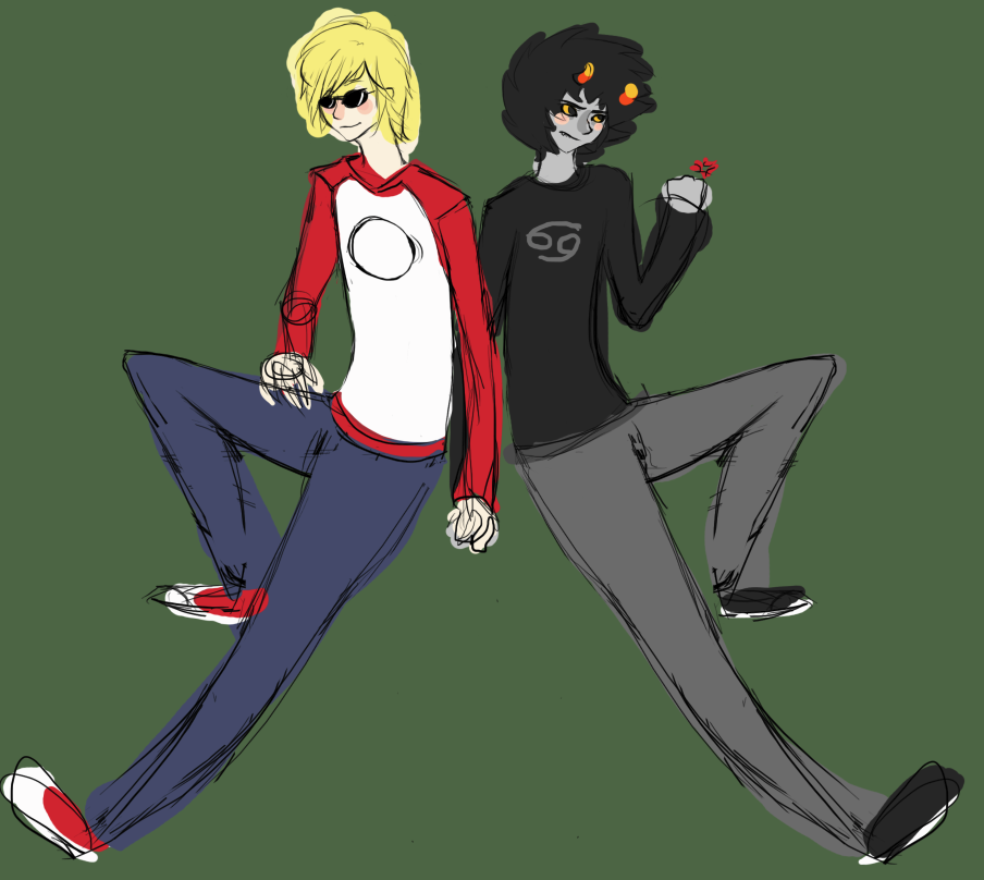 I really like your art style! I'm not good with pricing, but I want a couple image of Dave and Karkat from Homestuck. Uhhhm, maybe holding hands but refusing to look at each other. Embarrassed babies? (this is for my sister, she loves this ship, so, just general cute I guess) I'll give ya 2mil and a WL item (but i'd put it under your tree so you'd have to wait)?