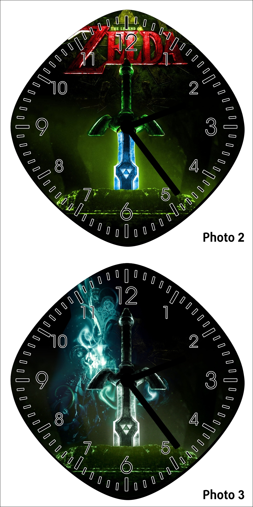 I'm getting a custom clock made by someone on etsy. Problem is I don't know which one to choose! I like the colors on clock 1 (called Photo 2 in the pic) but I don't really care for the logo being in the way and I do like the flourish on clock 2 (Photo 3).