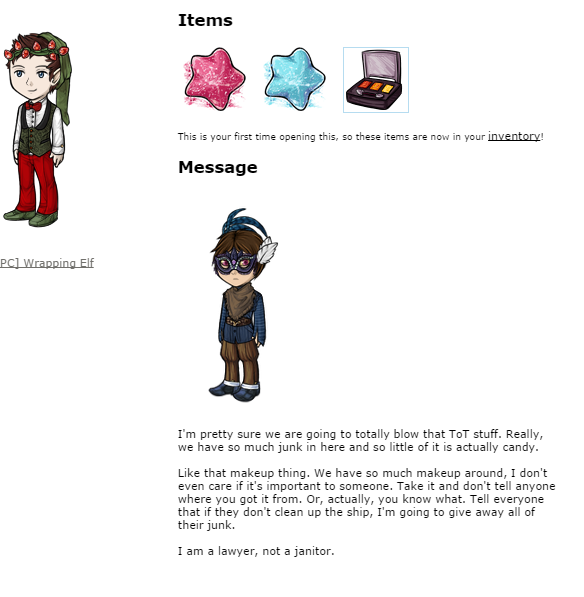 Thank you for the lovely sweets! My pets will surely enjoy them. I hope you and your crew are enjoying the festivities so far, your costumes are all quite dashing!