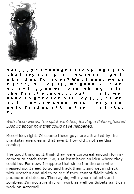 The good thing is...I think they were corporeal enough for my camera to catch them. So, I at least have an idea where they could be. For now. I suppose that since I'm the one who messed up, I need to go and track them...and get in check with Dresden and Ridley to see if they cannot fiddle with a paranormal detector. Then again, with your mutants and zombies, I'm not sure if it will work as well on Subeta as it can work on Aeternali.
