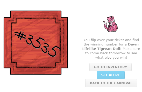 You flip over your ticket and find the winning number for a Nuclear Lifelike Kora Doll! Make sure to come back tomorrow to see what else you win!