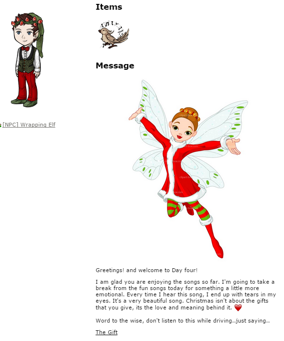 Awww! I'm glad someone thought to gift the Christmas Song Fairy!