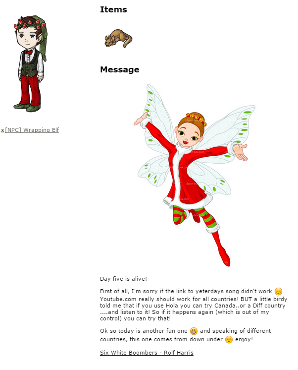 The Christmas Song Fairy is still going strong, and the kangaroo song really made me laugh :'D
