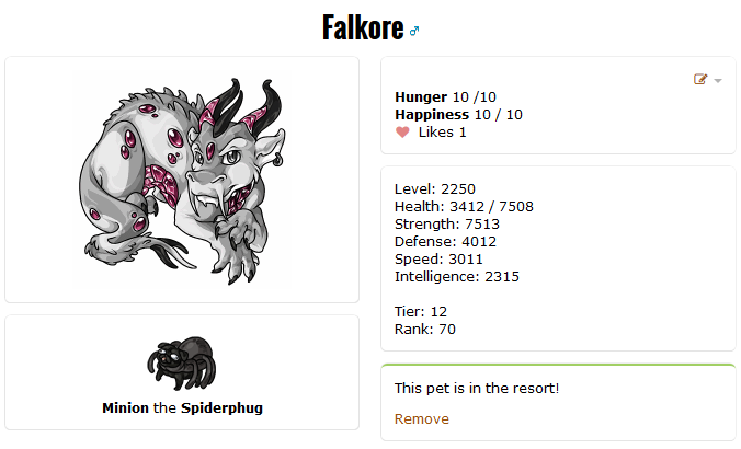 Falkore's stats aren't all pretty though because I used the Universal Remote I've been saving all this time when I was at 21,999 stats (I got 17 intel from it!!), but here he is in all his capped glory: