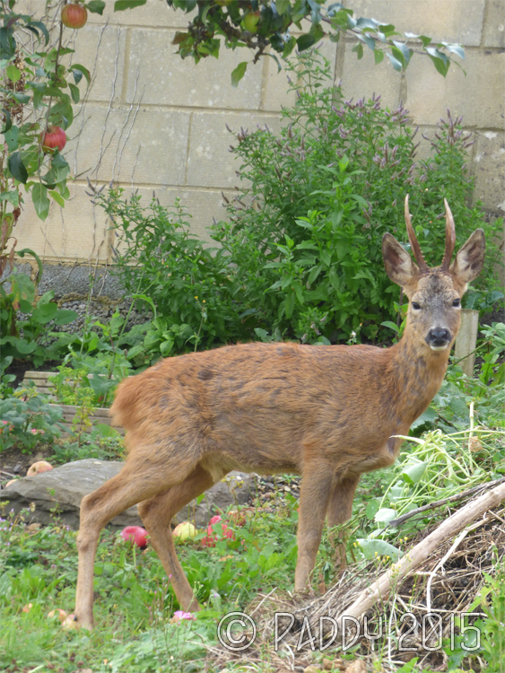 Here's the deer that was in the neighbour's garden earlier.... he seemed to be eating grass and apples ;)