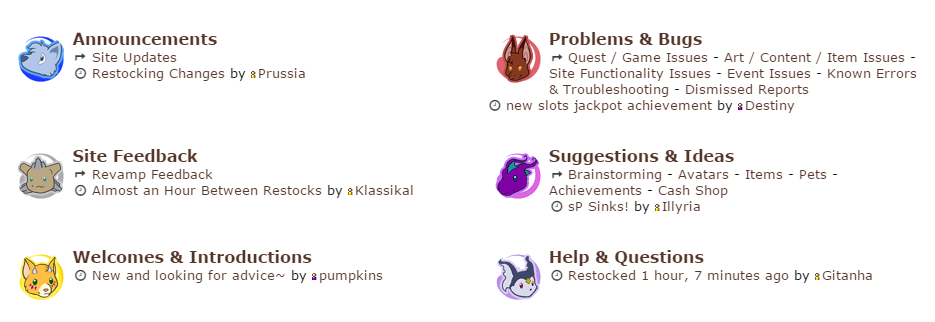 Glad to see I'm not the only one upset by the restock times. I too came here from Neopets years ago. Over there restocking was how I made money and the same goes here. Like other mentioned just because two sites have some of the same ideas doesn't mean it is a bad thing. I left Neo and never looked back because Subeta was a much better experience. I still love it here but if the restocking keeps on this path of doom then I will no longer be here either. Heck I may have to go back to Farmville gasp