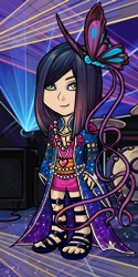 Juana stared at the pictures of the bands billed for the show. Stormboys eh? She thought to herself. They sure are shiny... First things first, I will have to find a way to lighten my hair. She pulled out her makeup bag and found some silver sparkly paint. Sitting in the mirror, she used a portion of it to decorate her face, then wiped the rest through her hair. She dug through her closet, grabbing out anything that sparkled or shimmered, and managed to find some broodingly colorful lightning leggings to boot. She threw on a few of her dual purpose garments to be sure she would be prepared. A rock concert is the perfect scenery for concealed weapons. Hidden blades in my shoes and corset, sharp wire for... who knows what, masquerading as anklets. Perfect. She got out her darkest henna ink for some nice body art to match the setting and checked herself out in the mirror. Hmm... something is missing. Flint flew to the back of her closet and came out with what looked like another sprite. OH! Juana exclaimed, That will do perfectly! And off she went to meet the others.