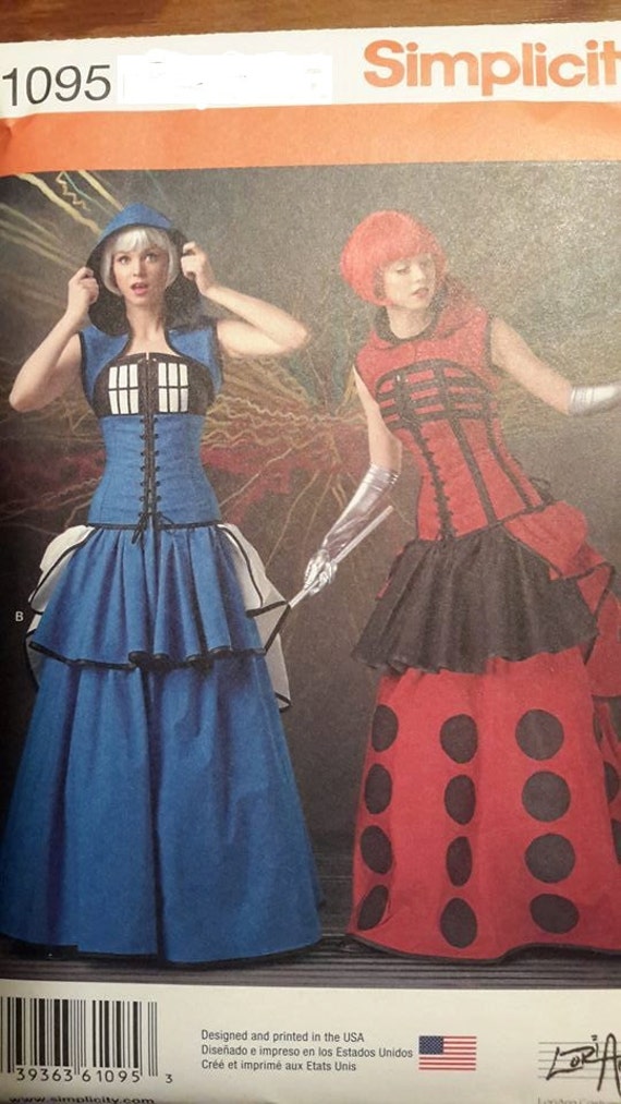 I'm going to be a sexy Tardis. XD I found the pattern at Jo-Ann Etc. It's basically the picture below, but I'm not making the huge long skirt - just the short skirt and then I'm going to wear tights (galactic print if I can get them in time, black if I can't) and black boots, and then I'm going to steampunk it up with jewelry that I made and goggles.