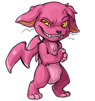 Edited it a bit; trying not to change the anatomy design of it too much. The head just seems way too oversized on the body, even for cartoony standards. also kind of looked like the neck is coming from its chin a bit, so moved the head forward a tad. The wing things- the large part looks like it had very little support from where it's attached to the rest of the wing, to me. Also with how the shoulder was positioned, it made the body look weirdly narrow/flattened. and the grin kind of looked too big for the bottom part of the face, so narrowed that down a little. Love the new pose though. Like it better than the old one overall.