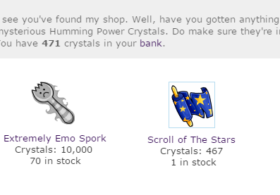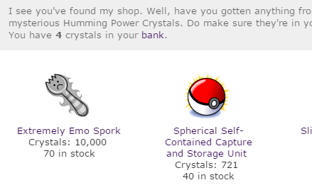 Fragging, what else? I refuse to pay more than 2K for humming crystals and most shops I stalk sell rares for way less than that. Had to break into my kitten doll collection though in order to make the final fifteen because the shops were really holding out on me.