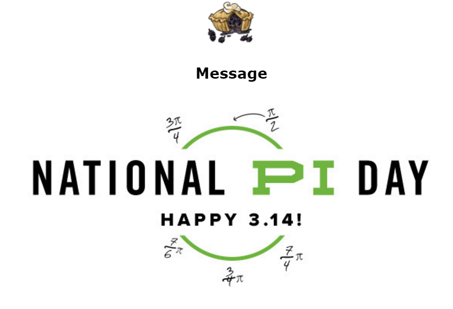 I just got this too, right after I got back from my work's Pi Day potluck. PIE EVERYWHERE <3