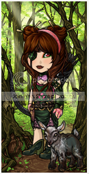 Her character Evelina and her companion Alfie: [IMG]http://i166.photobucket.com/albums/u111/Kellijuana/Subeta/WWS%20NNN%20TFW/Eva1_zps7yxxlbtw.jpg[/IMG] Her story: As Jilly and Mia slowly made their way to the Wayward Squirrel, they fished and slept out under the stars. “Now this is the life.” Jilly eagerly chomped into a roasted fish. Beside her, Salem was doing the same. Mia snorted in amusement. Like owner, like pet. “Whawt’s sho funny?” Jilly garbled behind a mouthful of fish. “Nothing. Eat your fish.” Mia ate some as well, hiding her smile. The mage’s ex-locket uncurled itself from her wrist, basking in the moonlight. Abruptly, Salem stopped eating and hissed violently. “Salem, what’s wrong?” Jilly dropped her fish. The cat only hissed again, and dashed into the forest. “Salem! Don’t run off by yourself!” The alchemist followed suit. Mia sighed, and put the fish down. That effectively ruined dinner. “Might as well go see what it is.” She motioned for her metallic blob. “Stay close”, she warned, running into the woods. Huffing and puffing, the mage finally caught up her friend. “Slow down, will you?” she wheezed. Before Jilly could respond, the trio was suddenly accosted by the very ground they were standing on. They had walked right into a trap! “What the hell?” Jilly yelped, limbs bent at uncomfortable angles. Salem meowed in distress. Mia spat out some leaves. “Lovely.” Before she could tell her metallic blob to cut them loose, a dark figure materialized. “Well, this is not what I was expecting.” The figure stepped out of the shadows, revealing a travel-weary, purple-haired woman. She rubbed her eyes groggily. “I’m really sorry, guys. Lemme cut you loose.” The woman got right to work sawing the trap’s strings apart. In no time, they were free. “What the hell?” Jilly said, softer this time. “That was for the forest animals.” The woman explained. “Normally I’d offer you girls dinner as an apology, but...” As if on cue, her stomach rumbled. She flushed in embarrassment. Mia groaned. The mage didn’t want to extend hospitality towards a stranger who just tried to catch her for dinner, but she couldn’t leave her hungry either. “Come back with us. We have fish.” “Really?” The purple-haired girl almost immediately began salivating. “Yes. Now come before we change our minds.” With that, Mia headed back towards camp. “Alright! Thanks guys, you’re a lifesaver.” She whistled. “Alfie, c’mon now. There’s dinner!” A small black and white goat popped out from behind the bushes and bleated happily, blissfully unaware of the awkward exchange that just happened between the three girls.