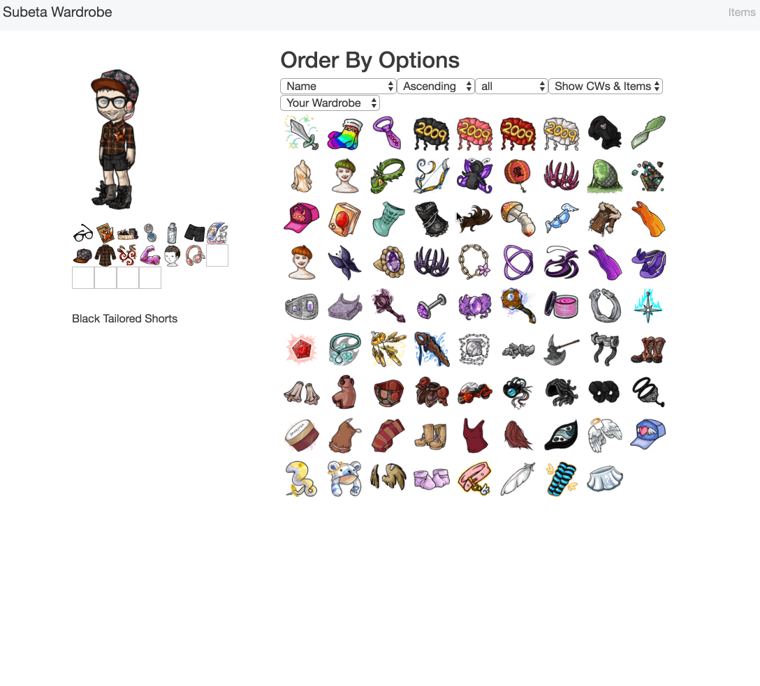 The majority of those items on your list seem like front end problems, but they're all tied to the way that the avatars are stored on the backend and the sort of hacky fixes I had to make to make them display in the new front end. This is resolved with a backend designed for a new system, and an API that makes it easy to change the items. Things like the shared items, way that items are listed, etc, are all back end storage issues.