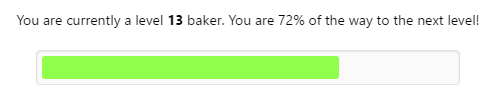 You are currently a level 9 baker. You are 72% of the way to the next level!