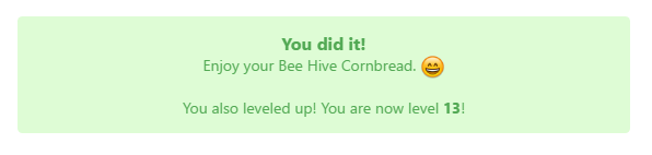 You are currently a level 15 baker. You are 93% of the way to the next level! Come back in 60 minutes to check on the Banana Nutmeg Chai Bread!