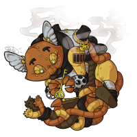 They're a Journey (the game) fanpet, and their overlay was a lot of fun to make. Blending details from the Nostalgic Harvester and the game's character. Using Subeta's Saheric alphabet in place of the game's glyphs on the scarf. I'm very happy with the results. c: