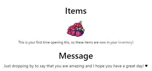 Someone has sent you a Purple Giftbox! Check your gifts to see what you got :)