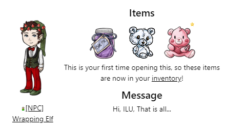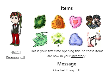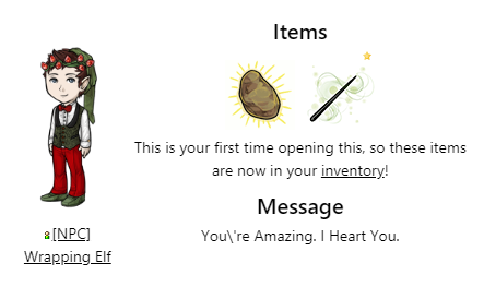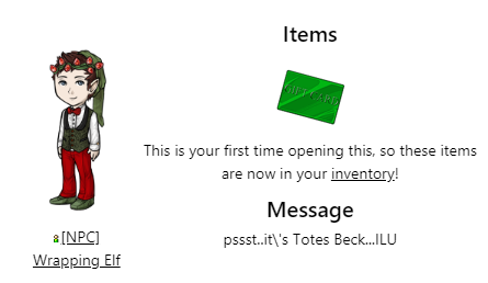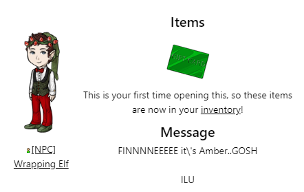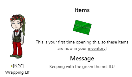 Items [Item=100 Credit Gift Card] This is your first time opening this, so these items are now in your inventory!