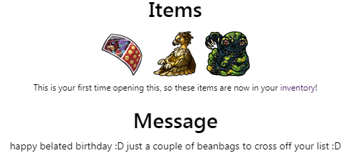 [b]Belated but appreciated gifts below[:/b] Thank you to who sent me this cute little package: Now I have a beanbag for my gallery as well as my collection! ^o^