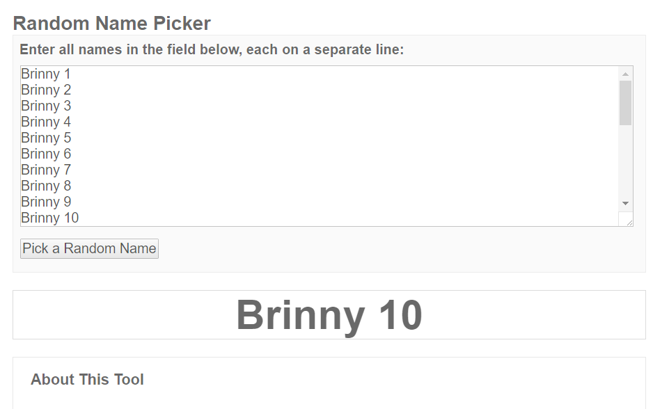 Just want to let you know that I am about to pick the winners using This website I have it set up like This so each entry is on a separate line and when I draw names I will erase the name drawn and draw again until all winners are chosen.