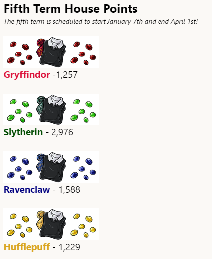 House Points (updated March 19, 2017)Current Standings