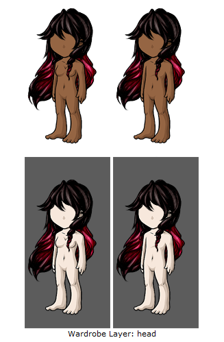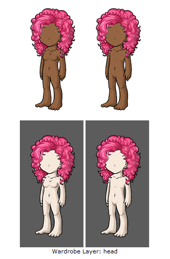 In this overlay example, there are white pixels bleeding into the avatar’s base color; this is primarily visible on the darker base.