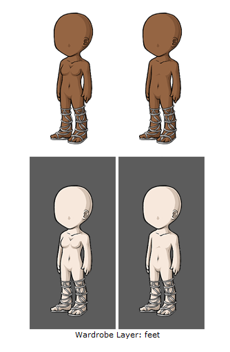 Male and female versions may only differ to compensate for the avatar base