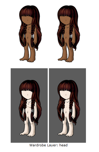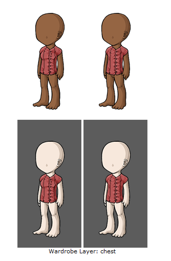 In this example, you can tell by the buttons and the line in the shirt that this was drawn as if the avatar was facing us head-on, rather than at a 3/4ths view.