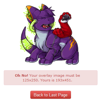 Item is not a 64 x 64 pixel .gif and/or overlay is not a 125 x 250 pixel .png