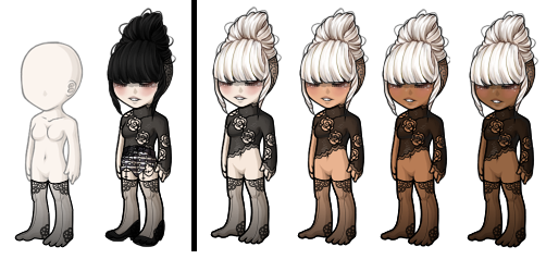 overlay: base - base + different colored (Light Blue Sheer Pantyhose etc)