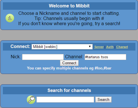 <p>If you don&;t recall how to join irc, please click here and then type in your name and the channel name (and pw) like this.</p>