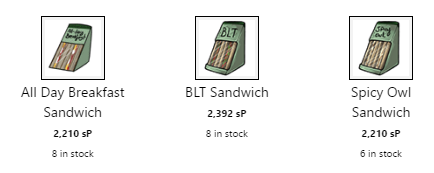 In the 'Get Mugged!' shop, there are all of these sandwiches near the top of the page. Ten or more. All of them had their images updated ages and ages ago, except the All Day Breakfast Sandwich. Was it just accidentally looked over? Does anyone know about this? Sob, I've finally broken down and have to ask. Who would I notify/question about this oddity? Poor Sammy, he must feel so old and lonely. =( All of his friends got spiffy makeovers and he's just.. sitting there... all sad looking in his corner of shame.