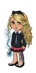Outfit Not Found Name:Lenore Addlebourne Nickname: Noe (Noh-ee) Username: Blood Status: Pure-blood Nationality: English born but raised in Scotland Spoken Languages: English (also reads runes) Birthday: 12th of October Age: 17 House: Slytherin Extracurriculars: Alchemy, Charms club, practicing hexes and curses, Owl breeding Favorite Class(es): Charms, DADA, Transfiguration Wand: 10" Beechwood and Unicorn hair, surprisingly swishy Patronus: Black Swan Boggart: Lenore's Boggart has never been seen and she adamantly refuses to talk about it. Pet(s): Stygian Owl named Pallas Favorite Quidditch Team: Lenore doesn't follow Quidditch but admires the Holyhead Harpies for being an all witch team. Favorite Candy: Chocolate Cauldrons with real Fire Whiskey Favorite Color: Deep red or petal pink Favorite Book: Too many to count. Lenore learned a charm to shrink her library shelf and carry it around in her bag just because of this. The works of a muggle named Poe became part of her otherwise all-wizarding collection after she learned that her name came from a Poem written by him. Favorite Holiday: Christmas Favorite Prank/Joke: Although witty, she's not much of a joker. She prefers to watch others pull the pranks. Appearance: Lenore is only 4'11" with a petite frame. She has blonde hair with just a bit of wave to it, pale skin and grey eyes. She has a naturally kind face which she tries to harden a bit with eye makeup. Personality: An introvert with a strong moral code of her own design - not the morals placed on her by society. She prefers to be quiet and often appears to be lost in her own thoughts but pays a lot more attention than people think. She is a free thinker and hates to do things simply because they are expected. Heavily influenced by the aesthetic, she often sits in odd places wherever she is, ie: window ledges, floor corners, treetops or inside cabinets. She is independent and confident in herself but not especially good with crowds as she finds too many voices in one conversation to be pointless and distracting. Lenore is the kind who will solve problems in her own unique ways without a second (or even first) thought to what others might think. Bio: Lenore grew up in the Wizarding village of Baron's Hollow in Scotland after moving there from London at the age of 3. Her father was heavily involved in the dark arts and brother to a lesser-known Death Eater. It was her father who moved the entire family into hiding after the fall of the Dark Lord. Her original name is unknown to her, having had it "obliviated" from her memory at the time. Her own feeling toward the dark arts is that they are useful for study but not to be used without need. All magic is connected and the shadow is just as necessary as the light. Lenore has had little interaction with Muggles, mostly due to her father's hatred of them. What little she knows about them she learned through her mother who takes a kinder view and named her after a favorite muggle poem, The Raven, by Edgar Allan Poe (a fact still unknown to her father). After having arrived at Hogwarts, Lenore has come to know wizards and witches of various parentage and is struggling within herself to find her own opinion about blood status. She is still very proud to be a pure-blood. Academically, Lenore is very talented and excels in nearly everything involving innate magical skill, however subjects such as Herbology and Astronomy which have little to do with actually performing magic come much harder to her. Goals: Lenore is not a long-term planner but loves to explore and wishes to travel the world, taking in the culture of other wizarding communities. She wishes for nothing more than to observe and not be observed, a silent watcher of the wizarding world for as long as life allows.