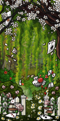 When she got to the opening a warm breeze came wafting through providing what felt like a hug around Lini. She sighed and shivered with pleasure at the sensation. Opening her eyes, she padded onward through the opening until she reached a T in the road. She looked to the left and saw a lane filled with dewy grass and flowers popping up, showing off their splendid colors and when looking to the right, she saw the maze hedges covered in vines, with what looked like fruit. She tucked her back paws under her and laid her head on her front paws to rest a little, she'd decide once her paws were okay. Being short and stout, didn't allow her to walk very far and caused sore paws. She thought she heard her friend Doom, but wasn't sure, she squeaked as loudly as she could in response. Hopefully Doom was having a fun time.
