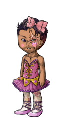 Atrueheart swallows her laughter with a hiccup and soothes Jeice as she helps her up. "Don't worry sweetie. You don't have to wear a wig if you don't want to." But I'm afraid you will have to wear a little bit of makeup." she says as she hands Jeice a costume and some ballet shoes. Jeice grabs them and mumbling under her breath "Rangers don't wear Wigs and Makeup!" she allows Jinx to show her how to put tights on one leg at a time. Looking around with a glare, Jeice warns the other Angels... "Just one of you laughs when I'm finished I'm gonna scrub it all off and go as me!"