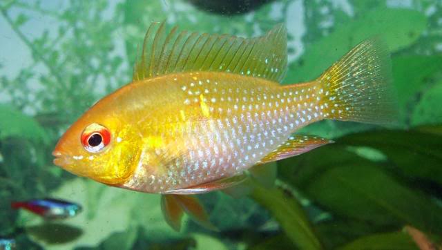 I ordered three blue rams so hope they come in on Friday. The golds are basically the albino version. these are the blue rams.