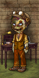 Ashton owns and operates a bar in Lower Ziara. His bar is relatively new, and since its specifically made for zombies, he hires the Muertekings for security, in case people decide to give his zombie patrons a hard time. He is perfectly capable of mixing drinks fit for the Living, but he has more fun catering to zombie tastes.