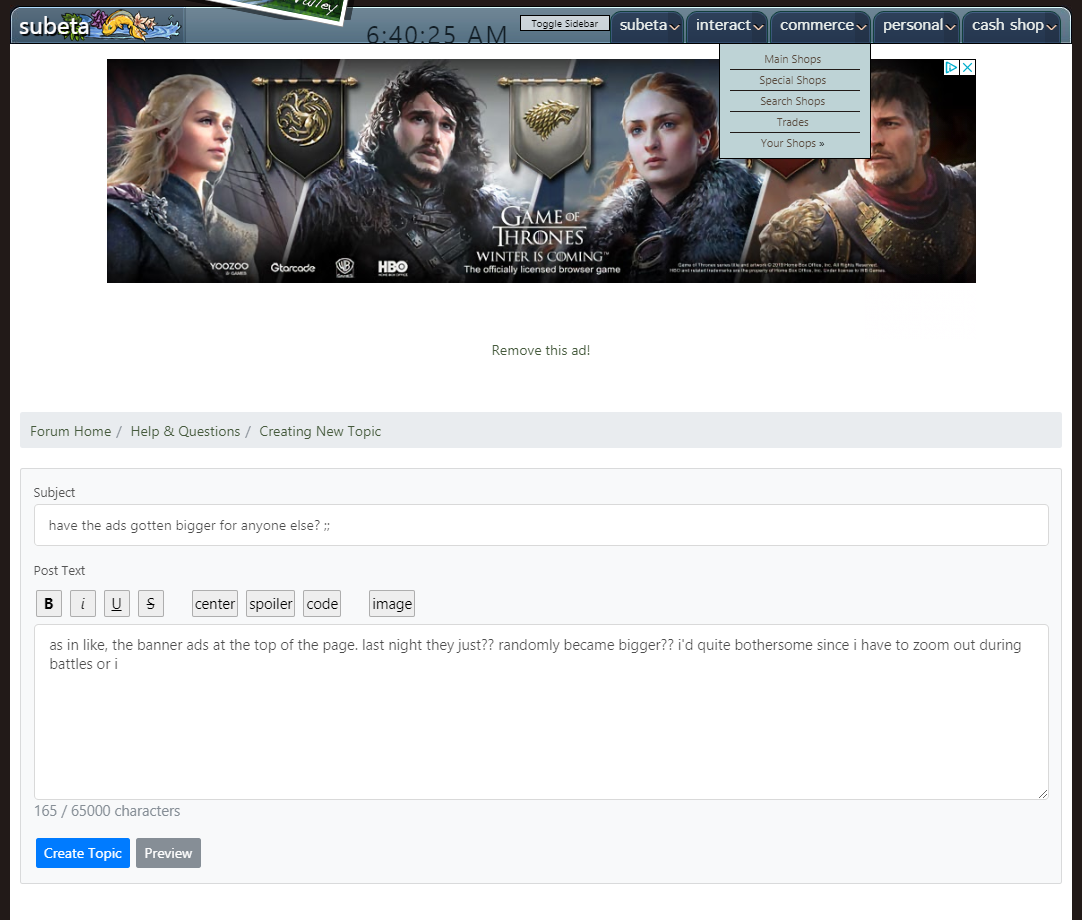 as in like, the banner ads at the top of the page. last night they just?? randomly became bigger?? it's quite bothersome since i have to zoom out during battles to not scroll ;;