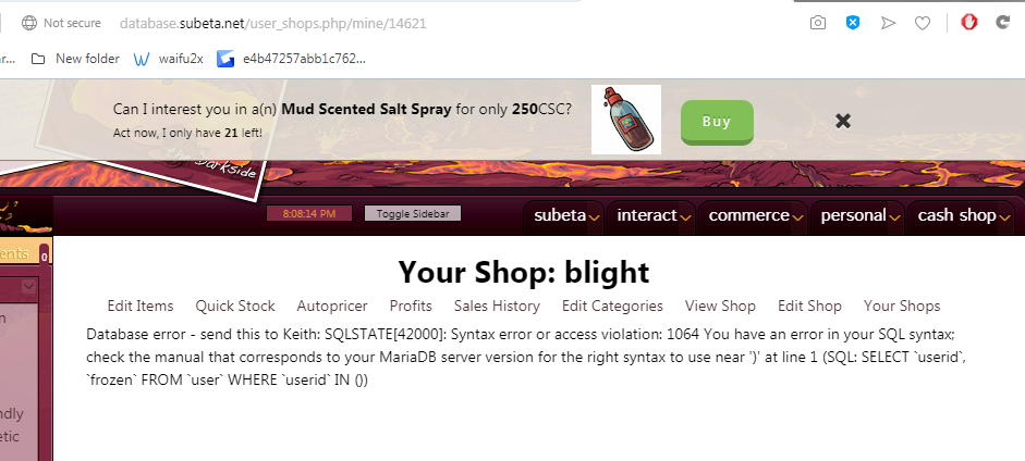 This was on https://database.subeta.net/shop.php?shopid=14 when I tried to buy something