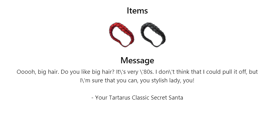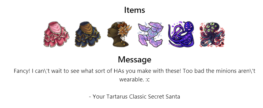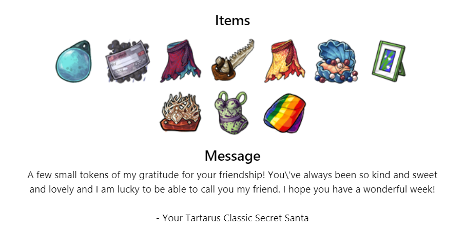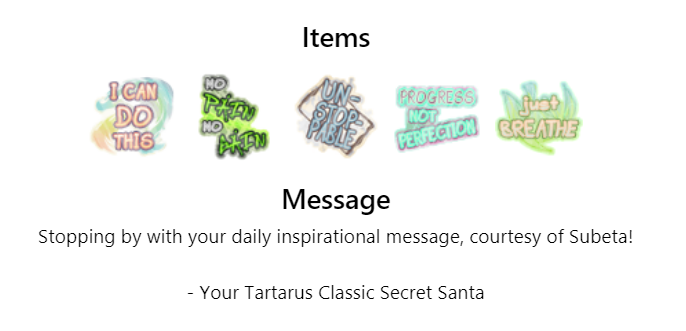 hi santas! ❤ this is just a quick reminder to please make sure you address all gift boxes with some sort of identifier (TSOS classic/creative SS) so that your recipient knows who you are receiving from! Lots of generous anons out here this season, so lets give credit where its due! in that same vein, i see a lot of you have posted gifts youve received, so good work! id really appreciate if everyone posted the things they receive, if only so your santa knows that they didnt just yeet something into the void of subeta LOL