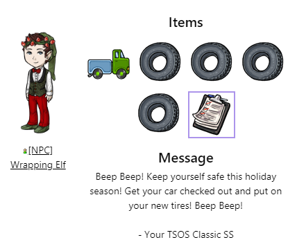 Awww, thank you, secret santa! I will definitely have my brakes and tires checked, as well as the oil changed and fluids topped off, before winter comes. Thanks for the reminder! <3