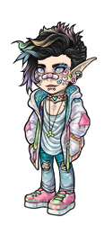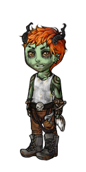 LOL! Bio isn't undead, hes just green because he's a gross goat person with poor hygiene. Who happens to also be possessed by a slime demon XD Actually a pretty smart cookie, traditionally a mechanic, but I think realistically he would be more of a gun/weapon maker. So it still fits! Hire him to kill things and maybe fix a firearm or two in the field. Both things he enjoys. Only sometimes hes gotta go into solitude to have a slime meltdown for a few days.