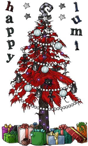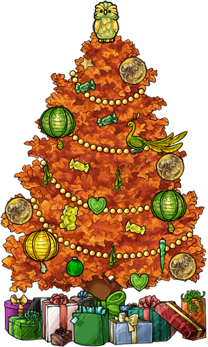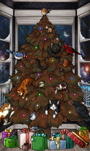 I think this is probably my favorite past tree, it's from 2018. :D I like how the tree I picked looks with the backdrop, and of course the birds!