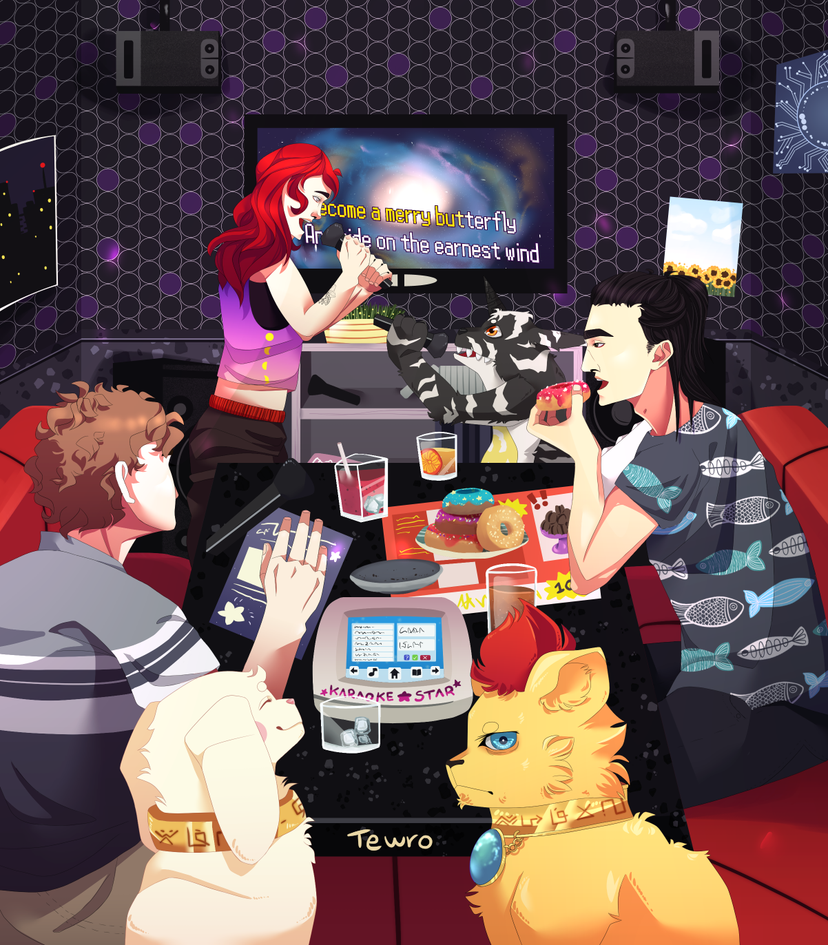 drew some of my digimon oc's doing karaoke :3c