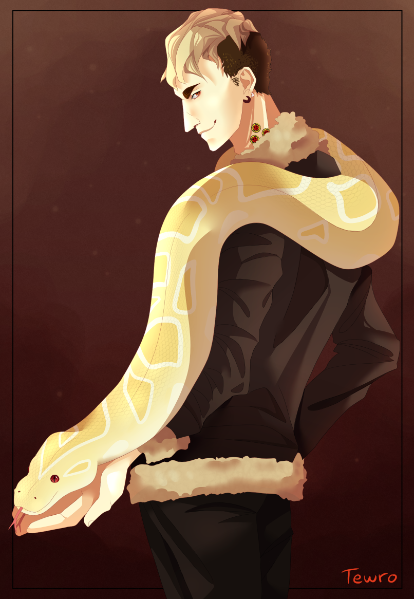 my oc salinger with one of his snakes, jupiter ' v '